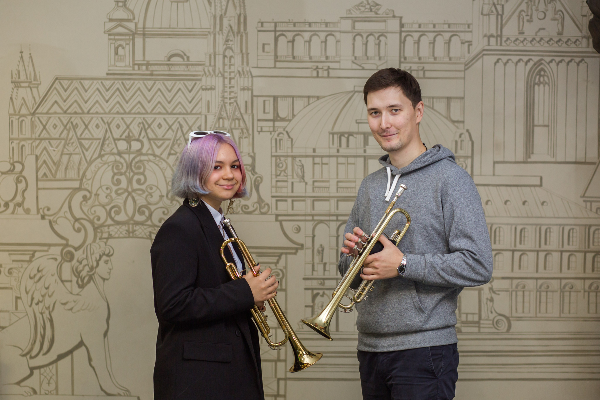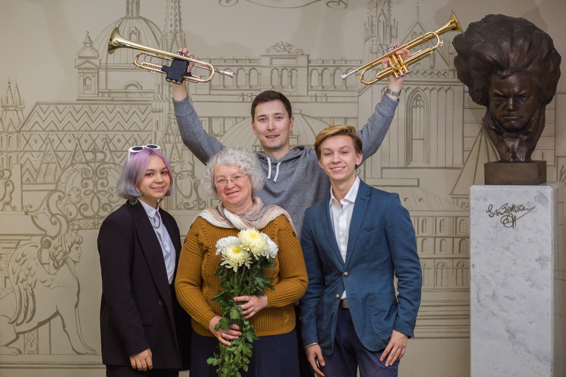 — Постановочные портреты с инструментом, преподавателями, друзьями по классу
